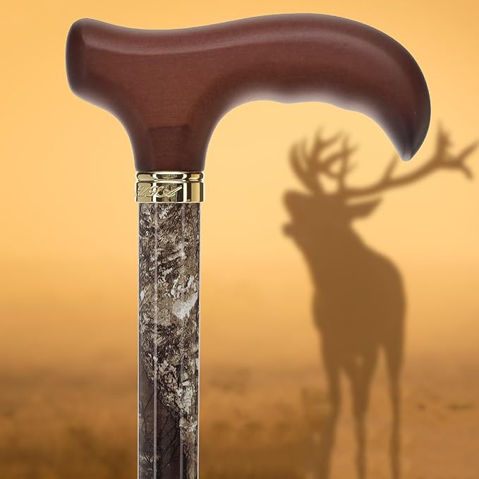 - Versatile Outdoor Accessory: Embrace nature with our beautiful walking cane, blending seamlessly into outdoor environments for hiking or leisurely strolls. Its lifelike camo pattern and gold engraved collar add style, while the flat lock nut ensures stability on various terrains. Crafted for adventurers and nature lovers alike.