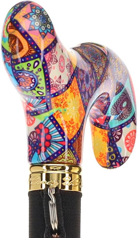 - Designer Chic: Embrace elegance with this foldable cane featuring a stunning, high-definition designer handle. The colorful collage pattern adds a touch of sophistication to your ensemble.