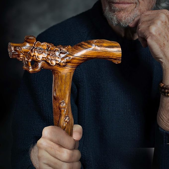 - Many times, we know that you feel older when using a cane, and lose the confidence and courage you should have. So, instead of following traditional wooden canes for men and women designs, choosing flowers and tree branches as decorative objects, combined with the shape of trees, is made through more than 30 processes of manual carving and polishing to manufacture this exquisite wood cane. It will make you more confident and unique whether you are strolling, shopping, or social gatherings