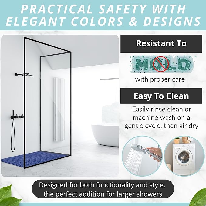 - EXTRA LARGE SIZE sized at 47 inch Length x 32 inch Width, our rectangle shower mat was designed for large shower stall floors for added coverage for more protection and safety. heavier and thicker than other mats, great for home, spa, gym bathroom, bath, and showers.