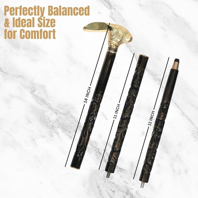 - Dimention : Open Length of the cane is 36", Weight : 700 gm, Wooden Finish : Black,Rosewood Handle Finish : Silver & Brass