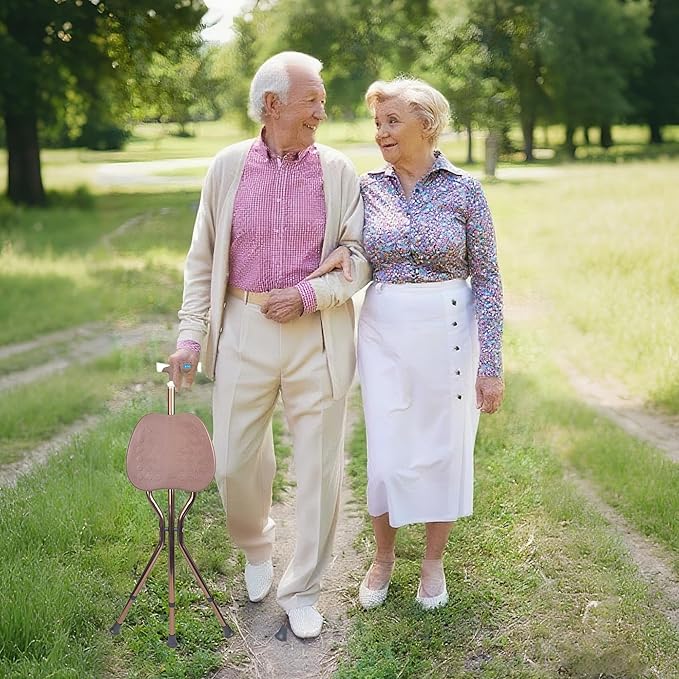 - Walker with Seat & Heavy-Duty Structure This collapsible cane combines 2mm aerospace-grade aluminum legs with impact-resistant plastic seating. The portable stool design features triangular bracing and non-slip rubber tips, maintaining stability even on inclines up to 15°.