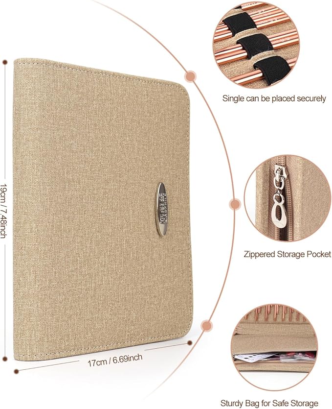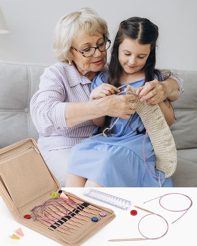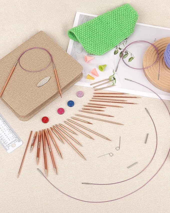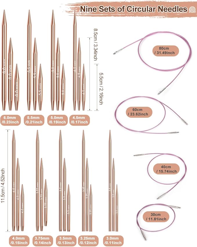 Aeelike Aluminu Interchangeable Knitting Needles Set, Circular Knitting Needles Set with 4 Cable 3 to 6 mm, Interchangeable Needle for Knitting Multiple Combinations, Gold