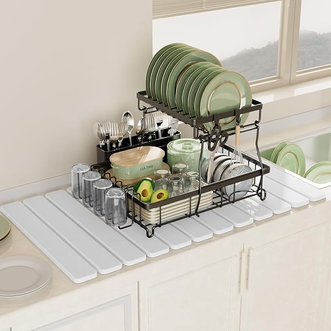 - Foldable Design: It measures 31.5 x 19.7in. Note: It shipped folded and will need to be opened upon receipt.When not in use, it can be rolled up and stored to save space.It can also be used as a large stone dish drying mat for kitchen counter,plant mat,entryway mat,pet bowl mat, and poolside mats.