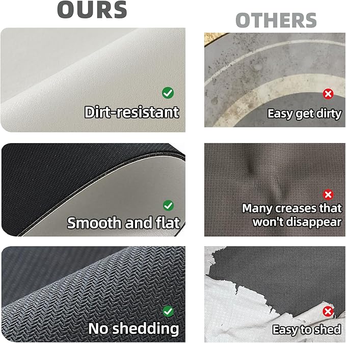 - Upgraded Non-Slip Backing: Our bath rugs feature a high-quality natural rubber backing, providing perfect anti-slip properties on the floors. They tightly grip smooth surfaces without skidding or curling up, reducing the risk of slipping for kids and the elderly. Say goodbye to traditional slippery TPE/TPR backed bathroom rugs and enjoy enhanced safety and stability