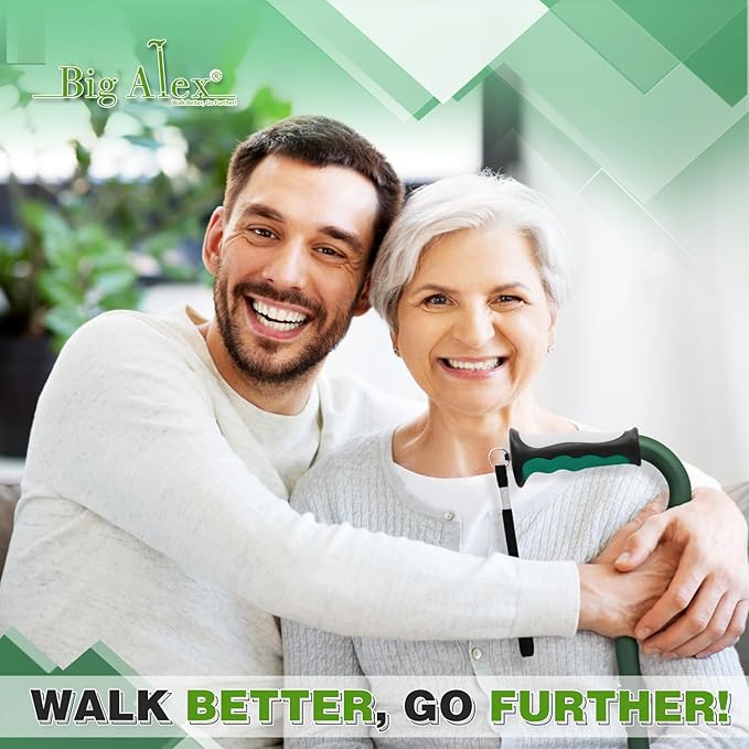 - USER-FRIENDLY GRIP: The handle of walking canes for men and women has soft TPR above and below, and this comfortable material handle fits the user's palm. The larger handle provides enhanced grip and comfort. No fatigue even after a day of use