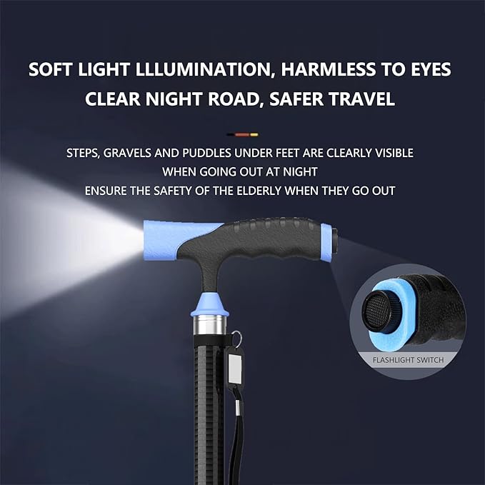 - 【LED Light】The handle features a built-in light, providing enhanced visibility whether you're navigating stairs or walking at night. The bright LED offers added safety and stability. Requires 2 AA batteries (not included);