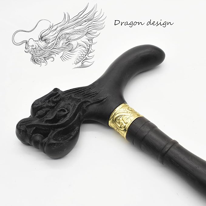 - 【Natural Solid Wood】The wooden engraved walking cane is made of wenge wood with exquisite carving dragon head pattern. It is Not only elegant and comfortable but also wear-resistant and durable. It is a solid wood dragon head cane-made for users, which can better show your unique charm and taste.