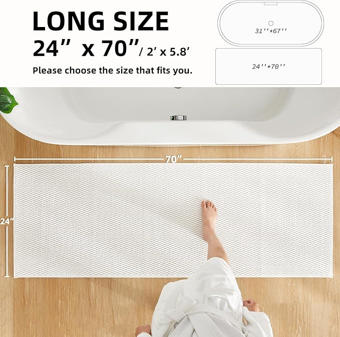 Bathroom Runner Rugs, Long Bath Mat Runner Washable Thin Quick Dry Low Pile Bathroom Runner Rugs Non Slip, White 24"x70"