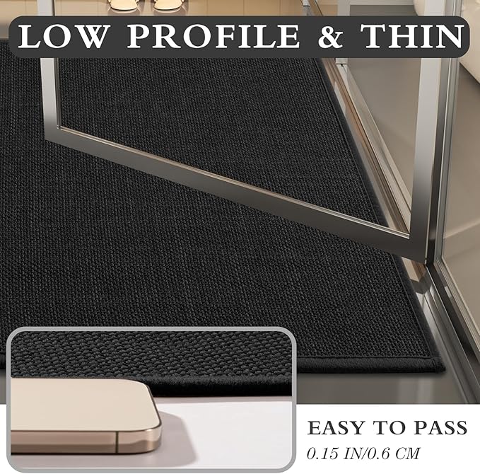 YIHOUSE Black Bathroom Rug Sets 4 Piece, Absorbent Bath Mat for Bathroom Non Slip Washable, Bathroom Mat Quick Dry, Thin Bath Rug Set for Toilet and Floor