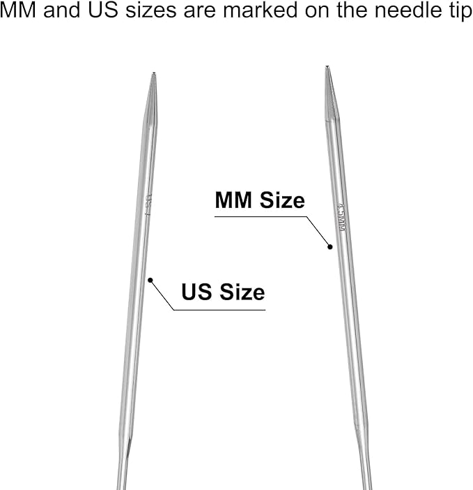 - [Size Marked on needle Tip] - Both MM and US sizes are marked on the needle tips, eliminating the need to search for the required size for specific patterns. The color of the circular needles is bright, making them easy to find.