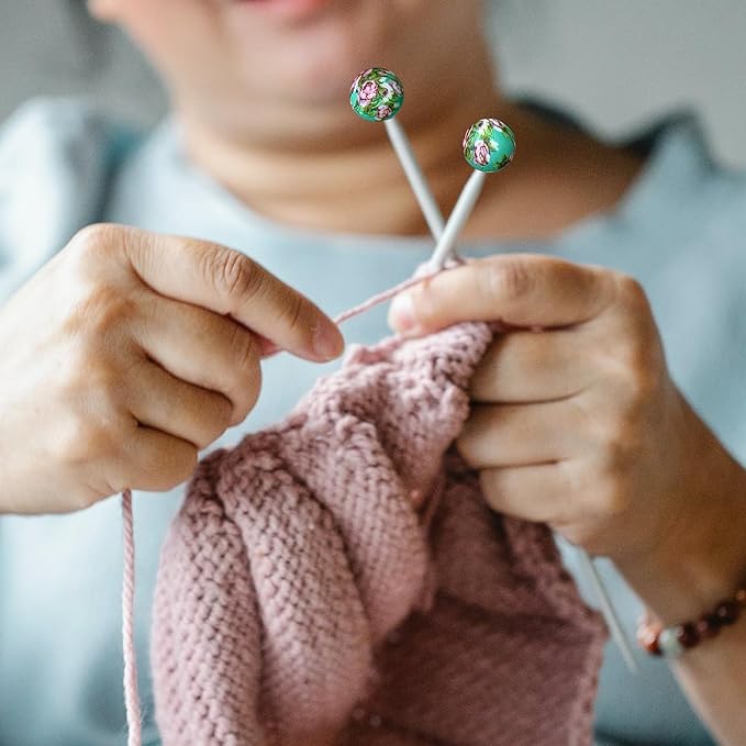 SPANSEE 8 PCS Round Ball Flower Print Stitch Stoppers, Knitting Needle Point Protectors, Stitch Holders for Knitting, Knitting Needle Caps, Knitting Supplies fit Size 2.5-13 (3mm-9mm) Needles