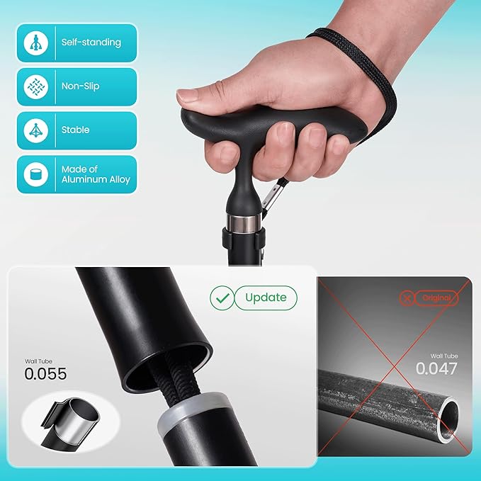 - Foldable & Portable: This foldable walking cane is compact in size, folding design can be easily stored in a backpack, and our collapsible canes for travel is lightweight, easy to carry on the go