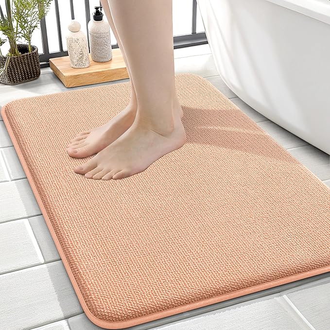 OLANLY Thick Memory Foam Bath Mat Rug 24x16, Extra Soft Absorbent Bathroom Rug, Quick Dry Bath Mats, Non-Slip, Machine Washable Carpet for Bathroom, Tub and Shower, Home Decor Accessories, Peach