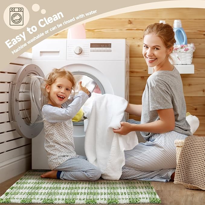 Waffle Bath Mat, Boho Bathroom Rugs Non Slip Washable Absorbent Checkered Bathroom Mat Quick Dry Cute Christmas Bath Mat, 30"x20" Green and White