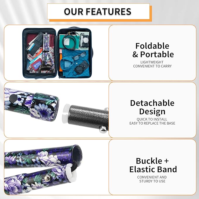 LIXIANG Walking Canes Stablize Women Quad Canes for Seniors & Adults Foldable Adjustable for Men & Women Heavy Duty Freestanding Cane for People with Leg Injuries 3 footings