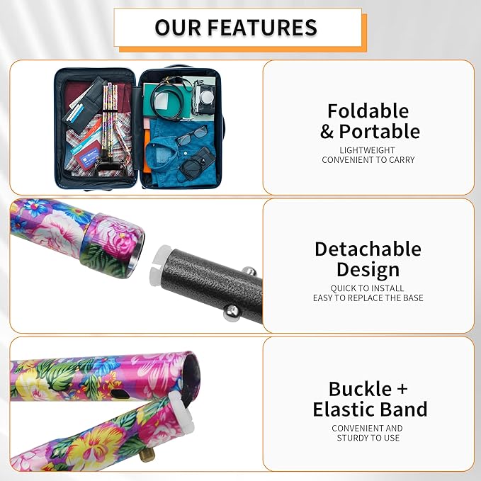 LIXIANG Walking Canes Stablize Women Quad Canes for Seniors & Adults Foldable Adjustable for Men & Women Heavy Duty Freestanding Cane for People with Leg Injuries 3 footings