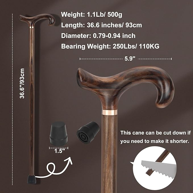 - 【Secure T-Handle & Refined Metal Accent】 The classic Derby (T-Handle) design offers a firm, comfortable grip for maximum control. Enhanced with a stylish metal collar, this cane combines robust construction with a touch of sophisticated class, perfect for both men and women.