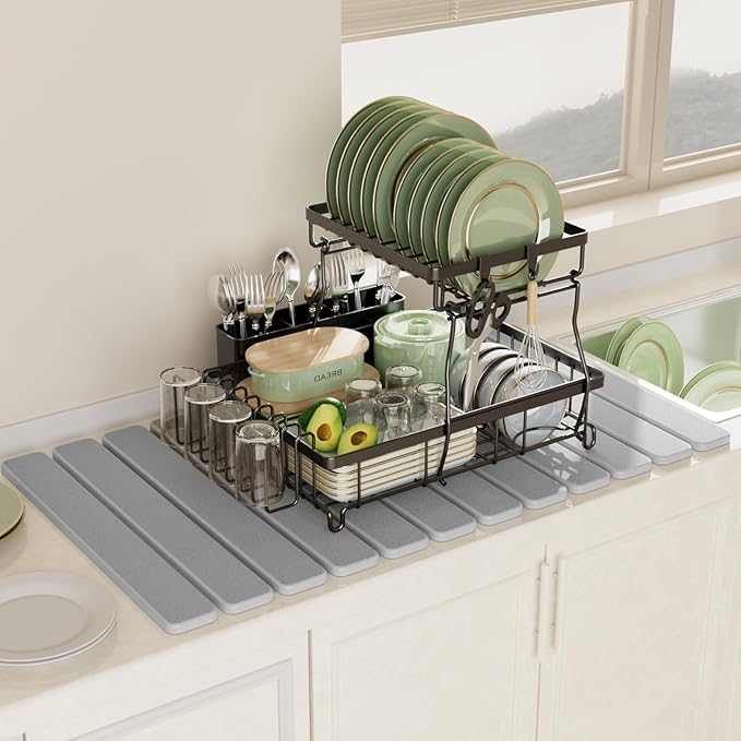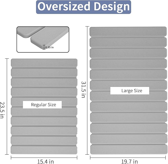 - Foldable Design: It measures 31.5 x 15.7in. Note: It shipped folded and will need to be opened upon receipt.When not in use, it can be rolled up and stored to save space.It can also be used as a large stone dish drying mat for kitchen counter,plant mat,entryway mat,pet bowl mat, and poolside mats.