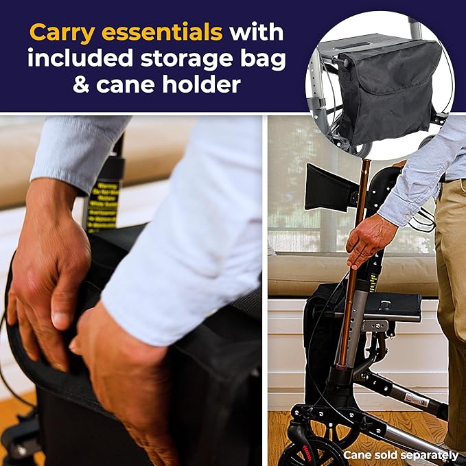 - CONVENIENT STORAGE BAG & CANE HOLDER – Keep essential items close and secure with the large, detachable storage bag and included cane holder.