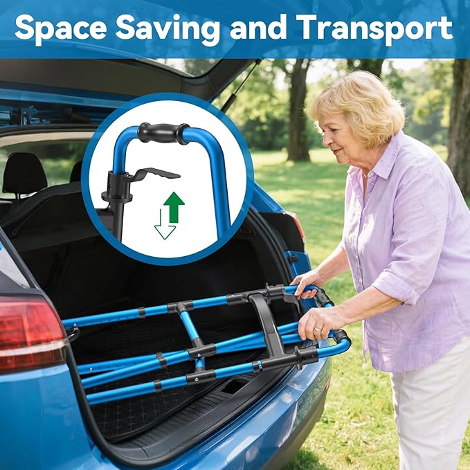 - Space Saving and Transport: The trigger release mechanism ensures effortless operation, making it easy to fold and transport. This compact walker fits in a car trunk or can be stored in a corner of a room