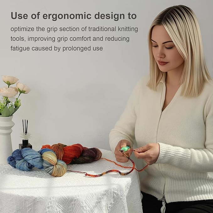 - UNIQUE DESIGN : Use of ergonomic design to optimize the grip section of traditional knitting tools, improving grip comfort and reducing fatigue caused by prolonged use. Whether you're working on a icord bind-off straps or Other Knitting Processes , this TOOL is designed to make your crafting journey seamless and enjoyable