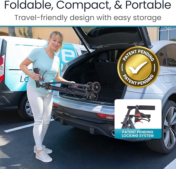 - PRE-ASSEMBLED FRAME WITH ALL-TERRAIN WHEELS: Durable 6-inch wheels glide smoothly over carpets, tile, pavement, and uneven surfaces, making it perfect for home, errands, and travel. Arrives fully assembled—just unfold and go.