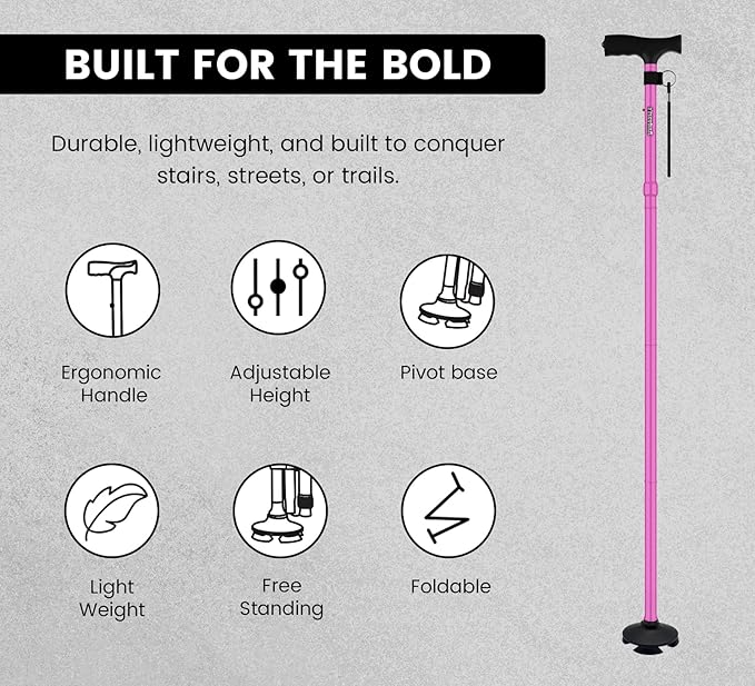 Walking Cane for Men & Women – Foldable, Adjustable, Self-Standing Cane with 360° Pivot Base, Comfortable Grip, Heavy Duty Canes for Women, Collapsible Walking Stick with Travel Bag for Seniors Adults