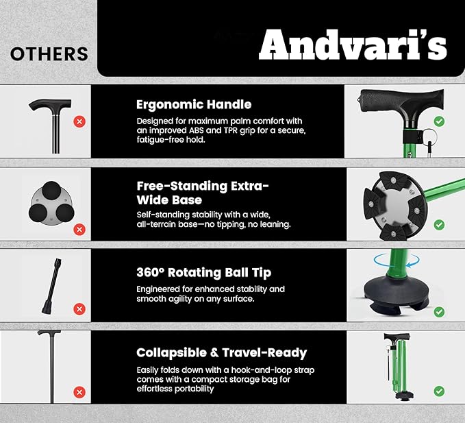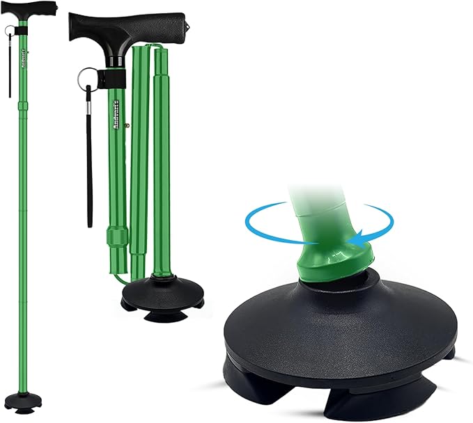 Walking Cane for Men & Women – Foldable, Adjustable, Self-Standing Cane with 360° Pivot Base, Comfortable Grip, Heavy Duty Canes for Women, Collapsible Walking Stick with Travel Bag for Seniors Adults