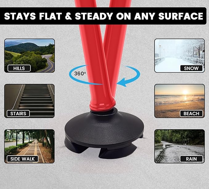 - [ Reliable Stability with Non-Slip Base ] The rotating quad base keeps all four pads in contact with the ground, helping you stay steady on uneven paths and indoor floors. The non-slip rubber pads provide secure traction and reduce the chance of slipping, giving seniors and adults more confidence with every step