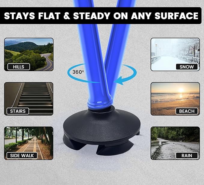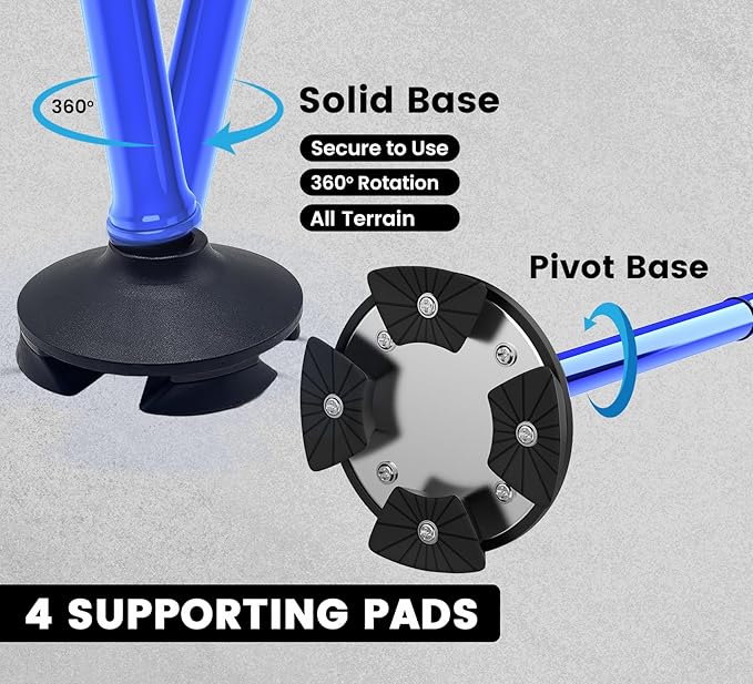 - [ Reliable Stability with Non-Slip Base ] The rotating quad base keeps all four pads in contact with the ground, helping you stay steady on uneven paths and indoor floors. The non-slip rubber pads provide secure traction and reduce the chance of slipping, giving seniors and adults more confidence with every step