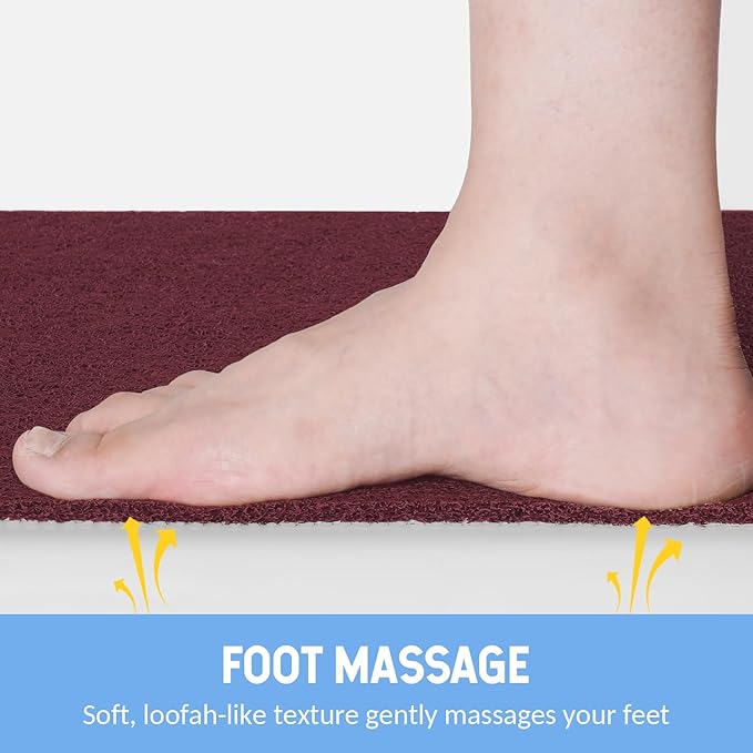 - 【Foot Massage】Hargiis bath mat is 0.4 inch thick to provide comfortable and soft support for your feet. At the same time, the loofah-like texture on the surface of the mat can also gently massage and exfoliate dead skin from your heels and other areas of your feet.