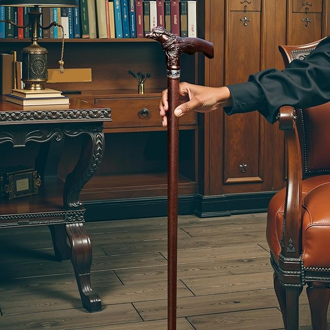 - EAGLE’S HEAD CARVING|FEATHERED AESTHETICS RESTING IN THE PALM: When an eagle perches on the palm with wings spread, each feather solidifies the arc of flight. This 360°hand carved wood walking cane features feather textures that form natural anti-slip grooves, ensuring a firm grip even with sweaty palms. The 17th refinement of the 12th flight feather creates a protrusion angle that precisely fits the wrinkles of the thumb, embedding ergonomics into poetic dwelling within palm lines