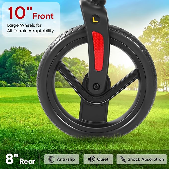 - 10 Inch Rubber Wheels - LOSEEF rollator walker features large rubber wheels (10" front, 8" back), 360° swivel for smooth rolling, non-slip, shock absorption for outdoors such as bumpy roads, gravel, concrete, grass, etc. This is particularly for users who prioritize comfort and joint health.