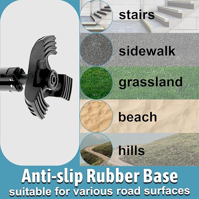 - Additional Accessories: Add anti-slip rubber pads to the bottom of the walking stick to enhance friction in rainy days, grass, snow and other environments. A storage bag is provided, making it more convenient to carry when going out.