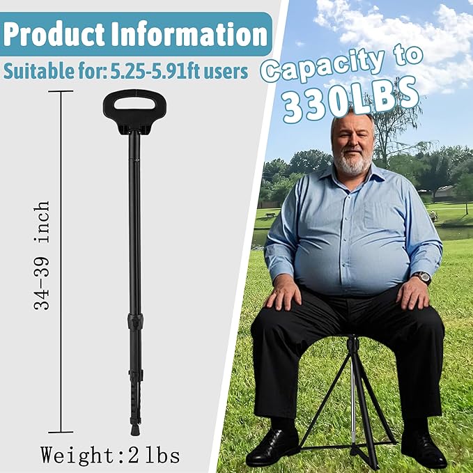 - Multifunctional Walking Stick Chair - Your Portable Resting Solution: Designed for hikers, outdoor adventurers, and seniors, this innovative cane transforms into a portable seat in seconds. Just slide the locking mechanism and extend the support legs to create an instant rest station. No more searching for benches during hikes, city walks, or park outings – take a break whenever fatigue strikes.