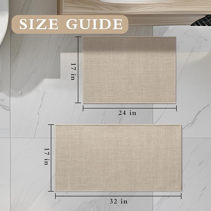 YIHOUSE Beige Bathroom Rug Sets 2 Piece, Bathroom Mat Quick Dry, Thin Bath Rug Set,Absorbent Bath Mat for Bath Room Non Slip Washable for Toilet and Floor(17"x24"+17"x32")