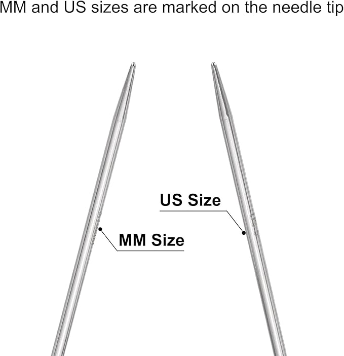 - [Size Marked on needle Tip] - Both MM and US sizes are marked on the needle tips, eliminating the need to search for the required size for specific patterns. The color of the circular needles is bright, making them easy to find.