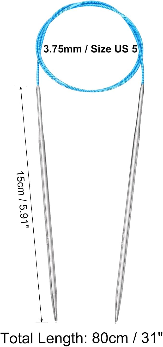 uxcell Size US 5 (3.75mm) Knitting Needles Circular Needle 31 Inch(80cm) Round Metal Stainless Steel Needle for Handmade Projects DIY Knitting Blue