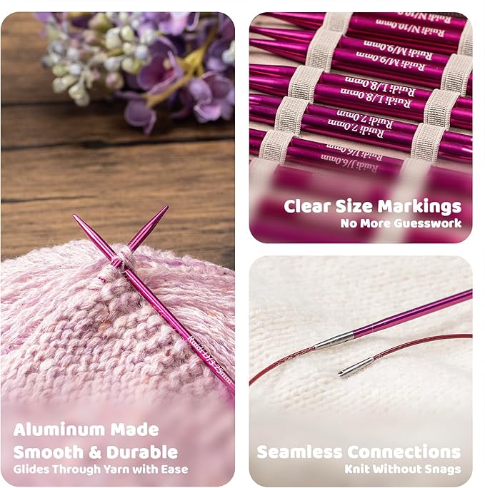 - [Deluxe Circular Knitting Needles Set]: Discover knitting bliss with our ergonomic circular knitting needles set! From US sizes 2.5 - 15 (2.5, 3, 4, 5, 6, 7, 8, 9, 10, 10.75, 11, 13, 15), our high-quality aluminium round knitting needles set are perfect for nearly any size knitting project.