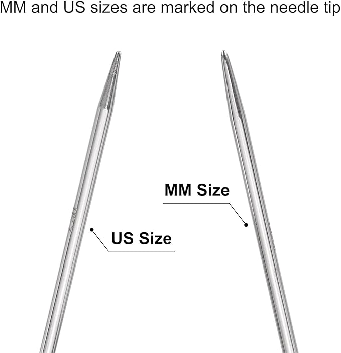 - [Size Marked on needle Tip] - Both MM and US sizes are marked on the needle tips, eliminating the need to search for the required size for specific patterns. The color of the circular needles is bright, making them easy to find.