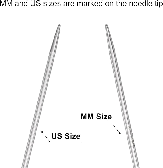 - [Size Marked on needle Tip] - Both MM and US sizes are marked on the needle tips, eliminating the need to search for the required size for specific patterns. The color of the circular needles is bright, making them easy to find.
