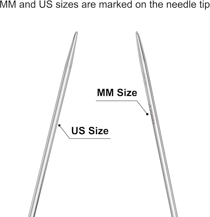 - [Size Marked on needle Tip] - Both MM and US sizes are marked on the needle tips, eliminating the need to search for the required size for specific patterns. The color of the circular needles is bright, making them easy to find.