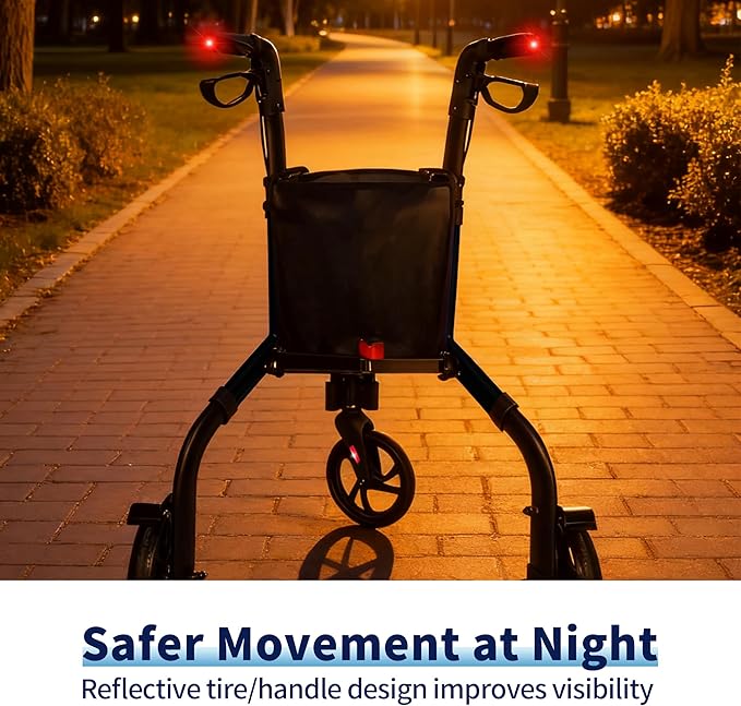 - ✅Sleek and Lightweight Design: Crafted from premium lightweight aluminum, this 3 wheel walker for seniors is not just functional but also stylish. Weighing in at only 12 lbs, it's effortlessly portable and can support up to 300 lbs.
