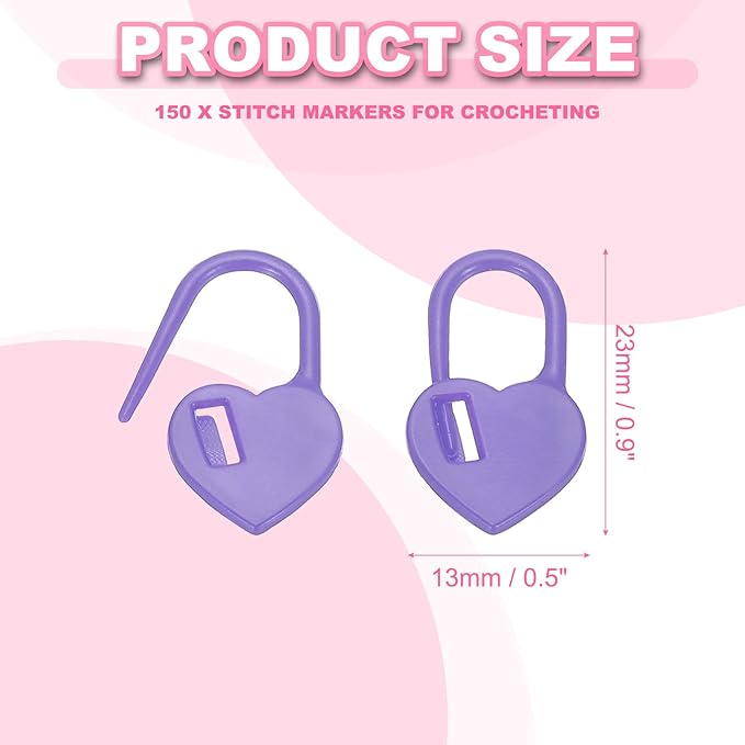 - Color: Purple; Material: Plastic; Size: 23 x 13mm / 0.9 x 0.5 inch(L*W); Packing List: 150 x Stitch Markers for Crocheting