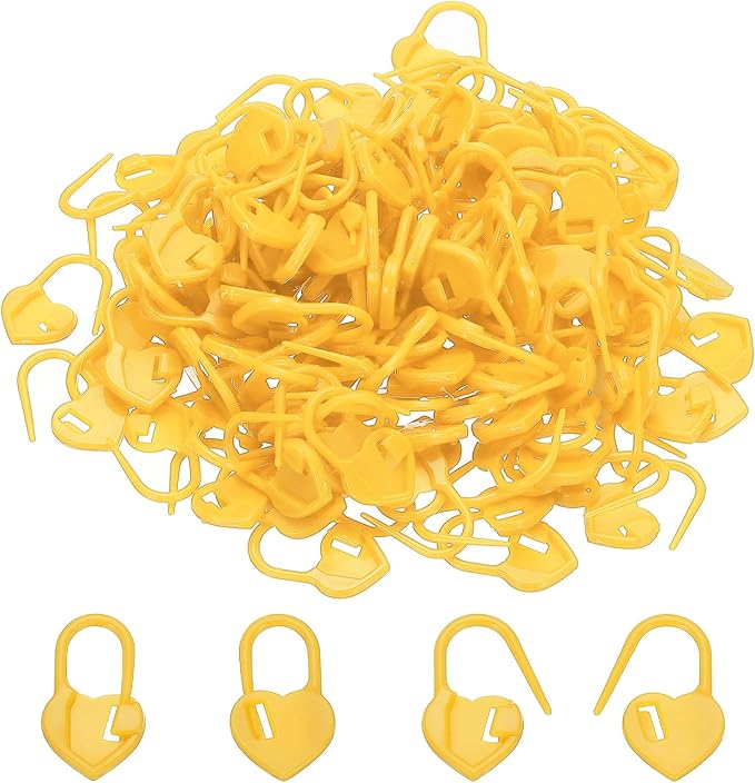 PATIKIL Crochet Stitch Markers, 150Pcs Plastic Knitting Markers Needle Pin Heart Locking Stitch Marker for Sewing Crocheting DIY Craft, Yellow
