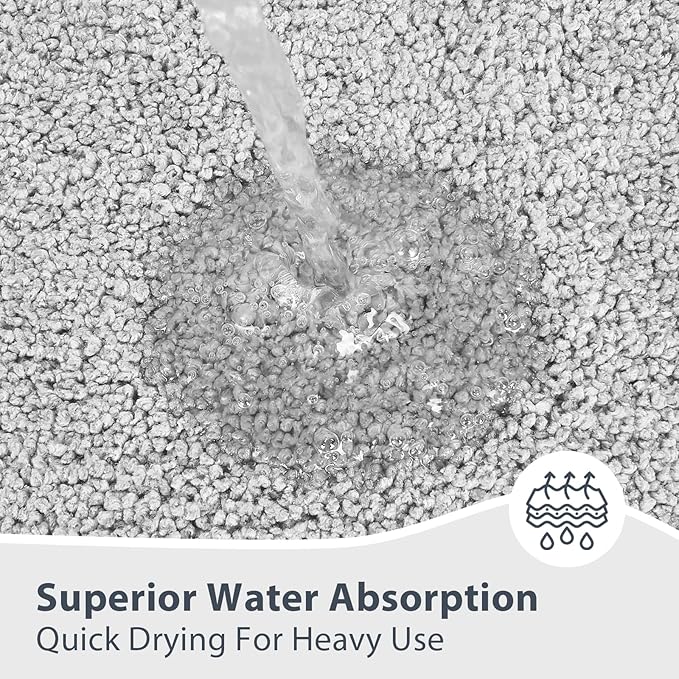- SUPER ABSORBENT & QUICK DRYING: The thick polyester fibers quickly soak up moisture from your feet, helping to keep your bathroom floors dry and safe. Ideal for use after showers, baths, or washing up at the sink.