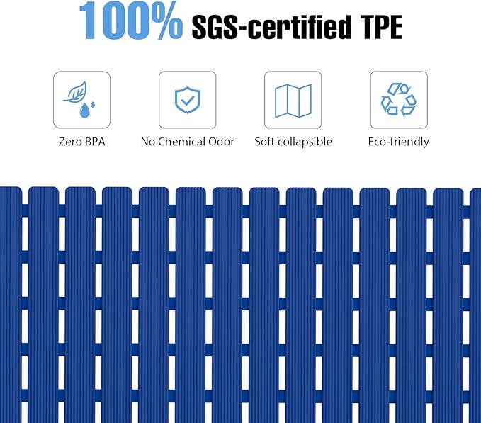 - SGS-Certified TPE: This non-slip bath mat for shower/tub is crafted with 100% SGS-certified TPE (Test Report NO.CANEC25008026405), featuring Zero BPA & Chemical Odor,trusted by 12,000+ Families for Baby Bath Time Safety.