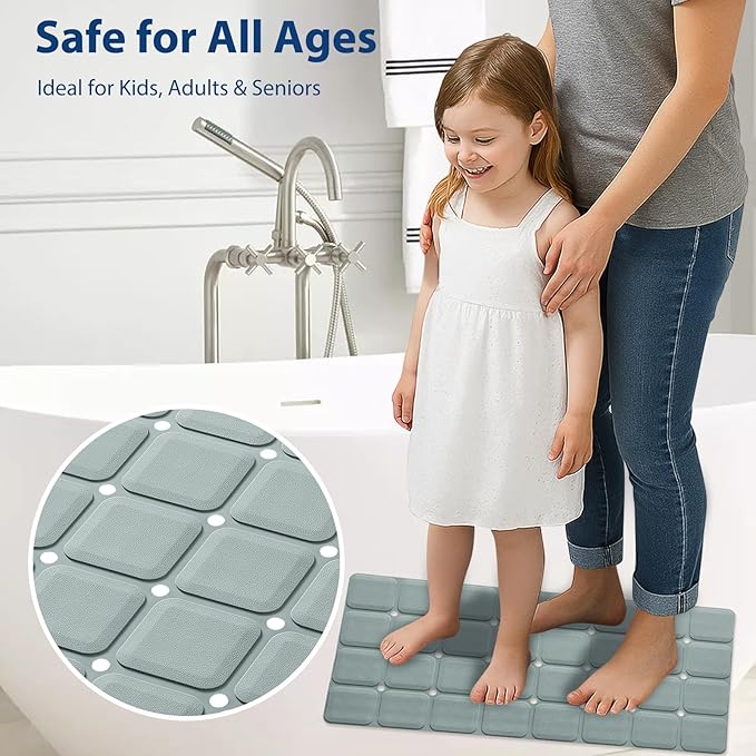 - ♣ [Strong Suction Cups for Stable Grip:] Equipped with tight suction cups, this silicone bath mat grips smooth surfaces securely, helping reduce slipping risk and providing stable footing in both bathtubs and showers.