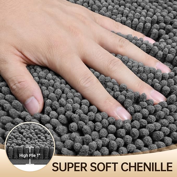 Amyracel Bathroom Rug Mat 36x48, Thick Soft Quick Dry Absorbent Chenille Bath Rug, Rubber Back Non Slip Machine Washable Bath Mat for Bathroom Shower Tub Floor
